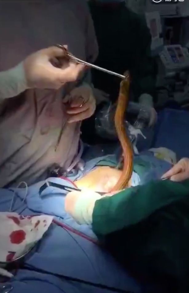 Đoạn video trên cho thấy một con lươn sống được kéo ra khỏi cơ thể một bệnh nhân Trung Quốc, theo Mirror.