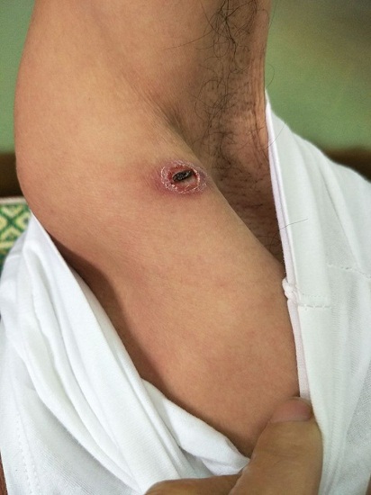 Hình ảnh nốt mò đốt trên phần cạnh nách của bệnh nhân